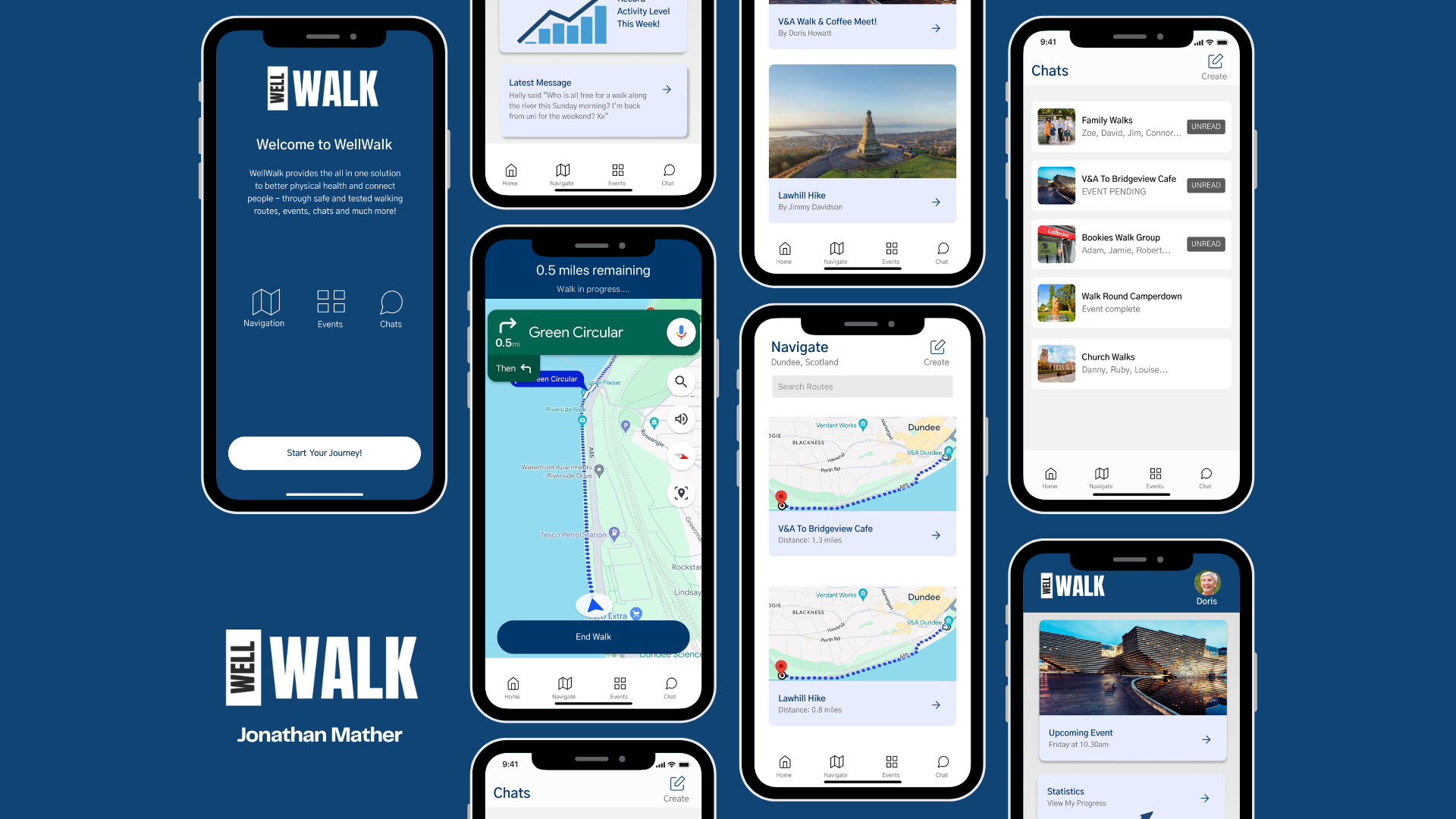 WELLWALK’ is a mobile app designed to tackle the problem of low physical activity in retired people, using social interaction as the key to its success.